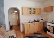 Po vstupe do bytu sa na pravej strane nachádza priechodná kuchyňa s praktickým kumbálom. Z kuchyne sa plynule prechádza do útulnej obývacej izby, ktorej dominuje krb, vytvárajúci príjemnú atmosféru počas chladnejších večerov. Z oboch miestností je krásny výhľad do záhrady, ktorý vám zaručí pocit spojenia s prírodou. Oproti vstupu do bytu sa nachádza priestranná, samostatná izba. Po pravej strane je umiestnená kúpeľňa spojená s toaletou. K bytu prislúcha aj podkrovie, ktoré sa v súčasnosti využíva ako praktický úložný priestor.