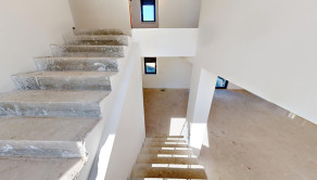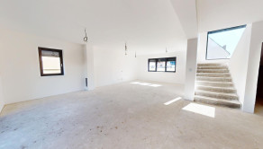 Na druhom podlaží nájdeme chodbu, tri samostatné izby, spálňu s vlastným šatníkom a kúpeľňou s WC, ďalšiu samostatnú kúpeľňu s WC, ako aj technickú miestnosť s predprípravou na práčku a sušičku. Dom je ideálny pre viacčlennú rodinu, ktorá ocení dostatok priestoru a komfort.