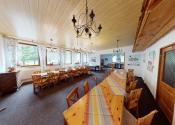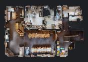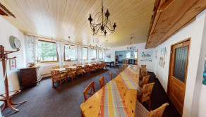 - na tomto podlaží sa nachádza ( sklad batožiny, lyžiareň, kancelária, chodba, schodisko, sklad-kuchyňa, kuchyňa, jedáleň, recepcia + spoločenská miestnosť vrátane krbu)