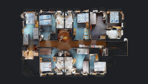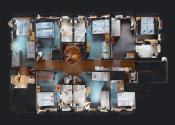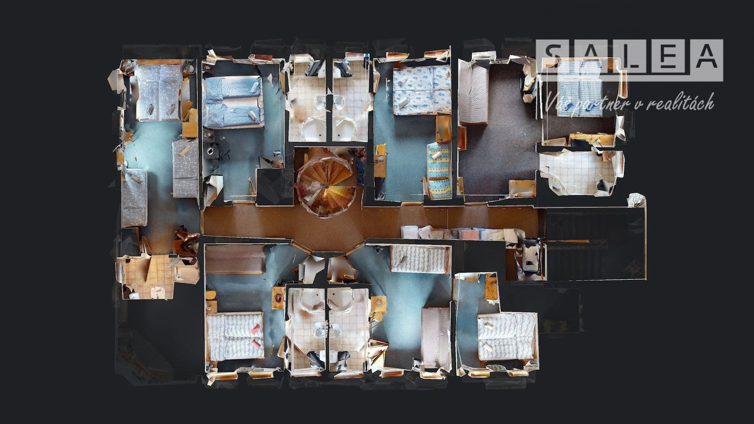 - na tomto poschodí je miestnosť pre personál a 6 izieb - každá izba ma vlastnú kompletne zariadenú kúpeľňu, chodba a schodisko na tretie nadzemné podlažie