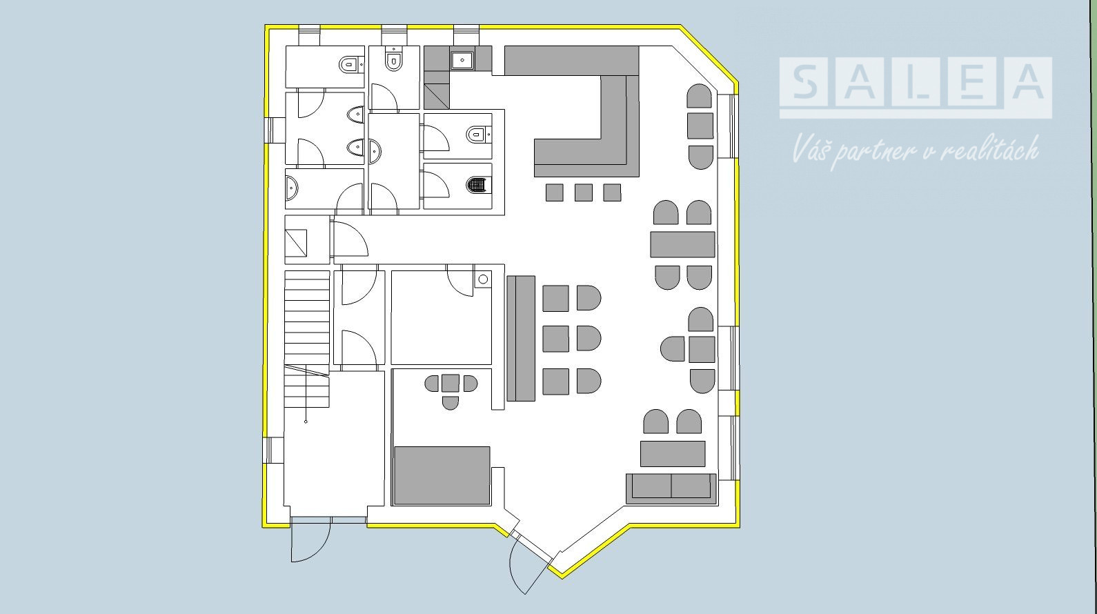 SaleA- Váš partner v realitách Vám ponúka na prenájom budovu priestory vhodné na prevádzku alebo služby, ktoré sa nachádza na prízemí budovy a na 1 poschodí budovy sa nachádza byt, kde je možnosť bývania alebo kancelárií. Budova sa nachádza v Šali Veči na ulici Slnečná so zastavanou plochou 178 m2 ktorú obklopuje multifunkčné a detské ihrisko pre deti a bytové domy. Veľmi dobrá lokalita na kaviareň, bar, reštauráciu, potraviny alebo služby. Pred budovou sa nachádza terasa na sedenie pre hostí plus parkovisko. Objekt je napojený na IS: voda, elektrina, plyn, kanalizácia. Dispozícia prízemia : vstup- vchod pre zásobovanie, chodba, wc ženy, wc muži, sklad, barová časť. Dispozícia poschodia- bytu: schody na poschodie, vstupná chodba, šatník, priestranná obývačka s krbom otvorená s kuchyňou , kúpeľňa so sprchovým kútom, umývadlom a wc, spálňa. Čo sa týka kúrenia je radiátorové - na plynový kotol, elektrický bojler na ohrev teplej vody. Budova je postavená z pálenej tehly. Vo fotkách nájdete aj možné varianty zrekonštruovania baru.