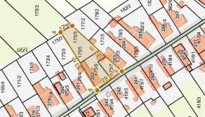 Šírka pozemku je cca 30m od ulice a dĺžka 62m.