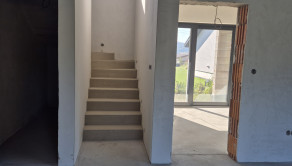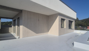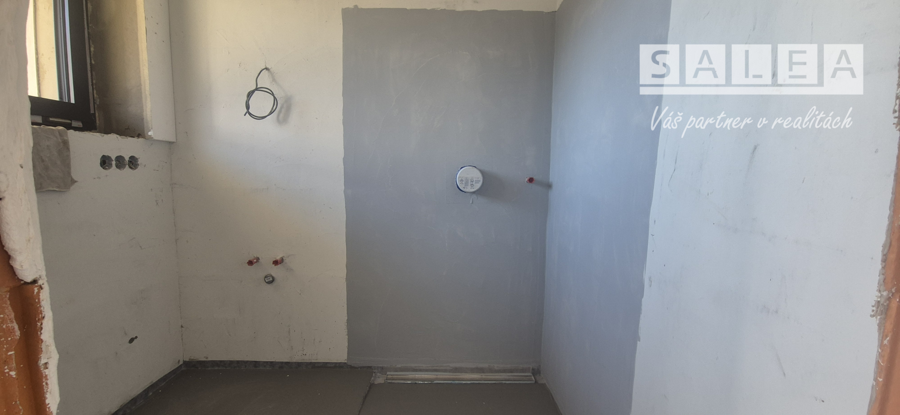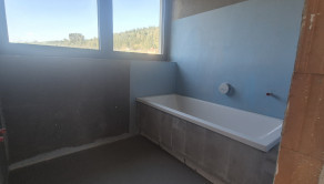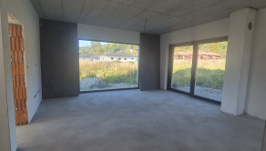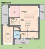 1 NP: (86 m²): vstupná chodba, výmerou nadštandardná obývacia izba spojená s kuchyňou, hosťovská izba, kúpeľňa 1 (sprchový kút + WC), technická miestnosť, terasa A