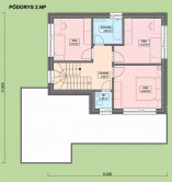 2NP: (45 m²): spálňa, dve detské izby, kúpeľňa 2 + vaňa, samostatné WC, terasa B