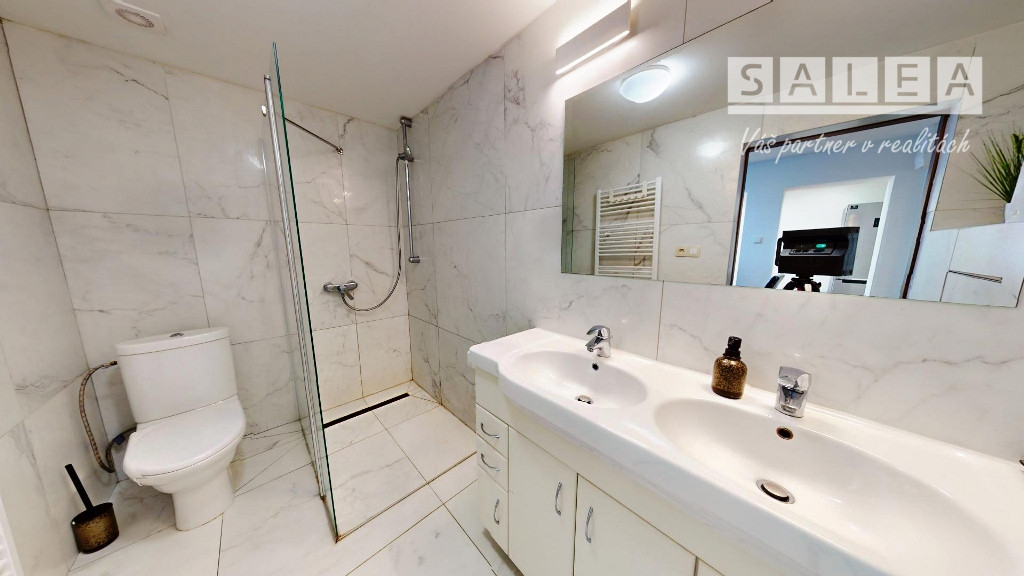 - Kúpeľňa so sprchovým kútom spojená s WC