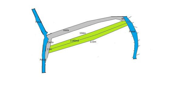 SaleA váš partner v realitách vám ponúka na predaj pekný pozemok o celkovej výmere 1140m2 a o rozmeroch viď priloženú mapku. Na ponúkanom pozemku sú vysadené ovocné stromy, pozemok je rovinatý, vedie k nemu spevnená prístupová cesta a veľká výhoda je tá, že cez pozemok tečie potok, ktorý môžete využívať na polievanie záhrady, Na pozemku sa dá postaviť chata, zrub, pristaviť mobilný dom, je to len na vás. Pozemok sa nachádza na tichom a pokojnom mieste. IS: na pozemku je kanalizácia, dá sa dotiahnuť elektrika, čo sa týka pitnej vody, treba spraviť studňu. Cena: 31 900 € - dohoda istá. V prípade záujmu ma kontaktujte na telefónnom čísle: 0905 646 790, alebo mailom: halama@salea.sk
