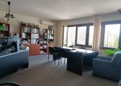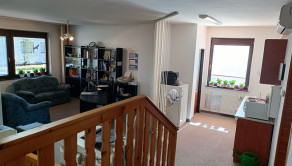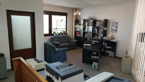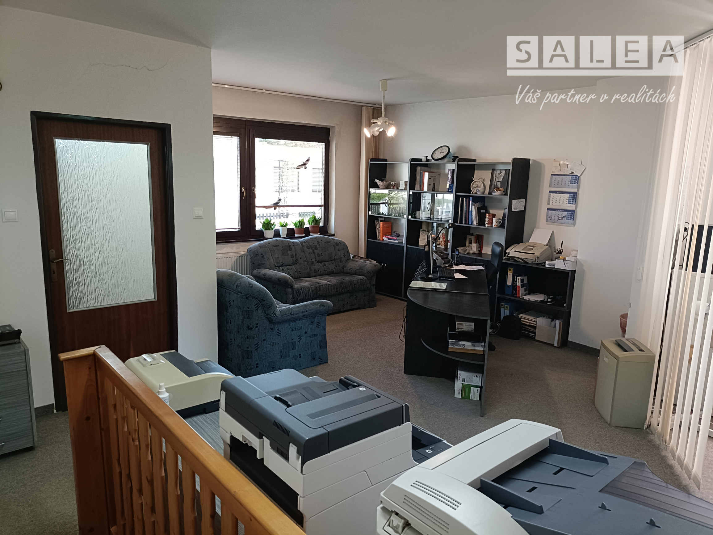 Celková úžitková plocha domu je cca 280 m2. Rodinný dom pochádza zo začiatku 80tych rokov, ale aj napriek tomu má dispozíciu hlavného obytného podlažia rozdelenú na "dennú" a nočnú" časť. V "dennej" časti je veľká priestranná vstupná hala s malou kuchynkou a kubálom a veľká kancelária. V "nočnej" časti sa nachádzajú 3 kancelárie a kúpeľňa s toaletou. V suteréne budovy je k dispozícii rovnaká podlahová plocha s 3 samostatnými miestnosťami, kotolňou, gáražou, 2 pôvodnými kúpeľňami (z čoho v jednej sa nachádza aj toaleta).  Suterén domu je zabezpečený bezpečnostnými mrežami a celý dom je napojený na alarm.