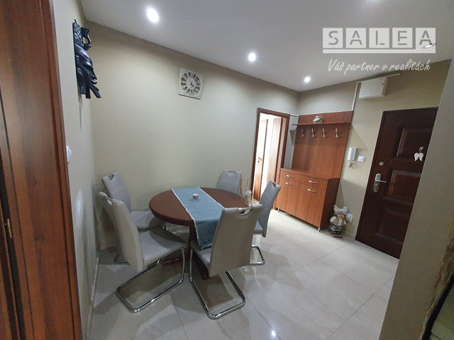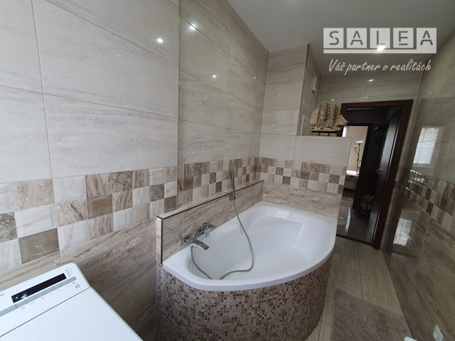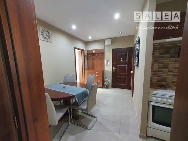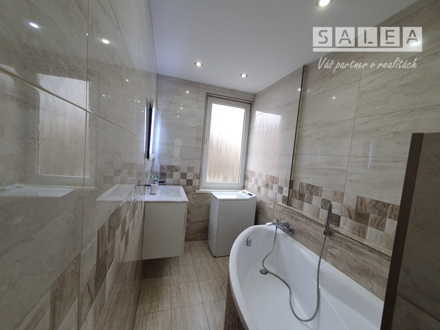 Nové: strecha, elektroinštalácia, odpady, plastové okná + interiérové žalúzie, keramická dlažba + plávajúca podlaha, interiérové + vchodové dvere (bezpečnostné), optický internet, elektronický vrátnik, kuchynská linka + spotrebiče, murovaná kúpeľňa (sanita, rohová vaňa, miesto pre práčku + okno). K bytu prislúchajú spoločné priestory na odkladanie bicyklov, špajza na medziposchodí (2m2) + pivničná kopka (2m2). Mesačné náklady: 130 €. Výhodou: slnečná lokalita, primeraná možnosť parkovania, autobusová a vlaková stanica (3 minuty chôdzou), dostupnosť do centra a parku (25 minút chôdzou), do prírody (cyklotrasa, Lodenica - 25 minút), občianska vybavenosť mesta, (MŠ, ZŠ, lekár, lekáreň, sieť obchodov, pizzeria, kultúra), MHD, prípoj na D1. INFO: kosutova@salea.sk Tel. č.:0911544948.
