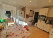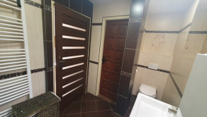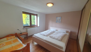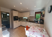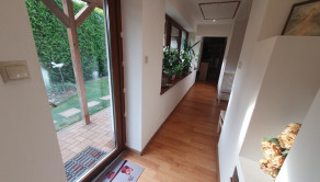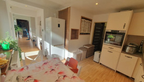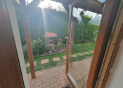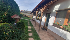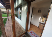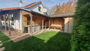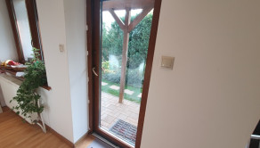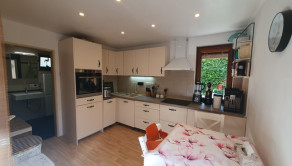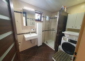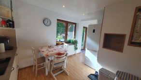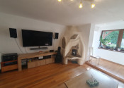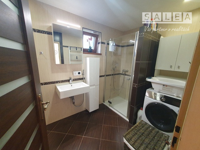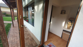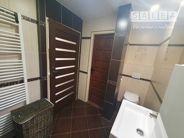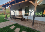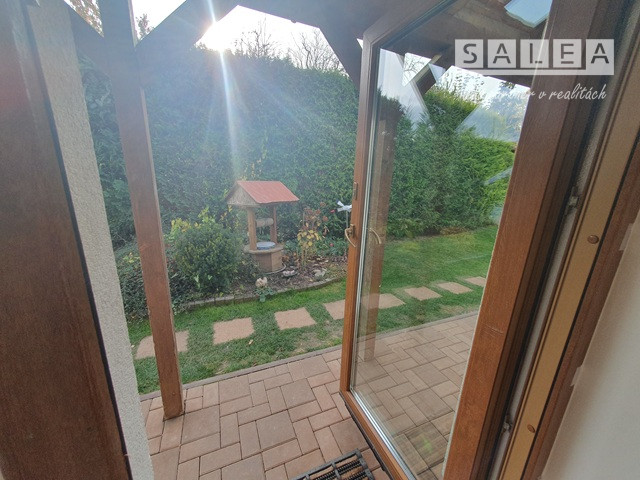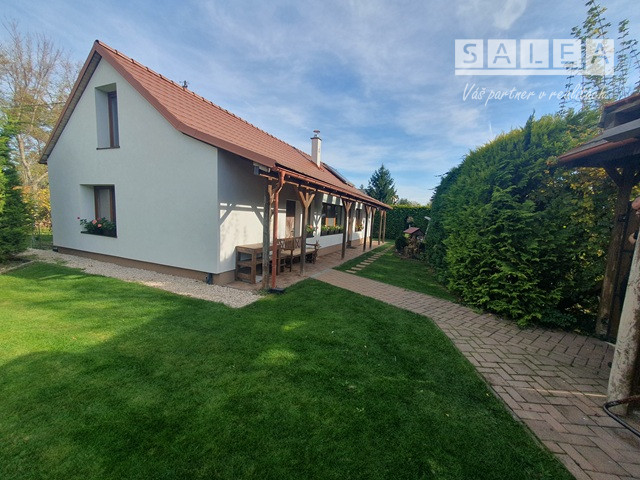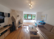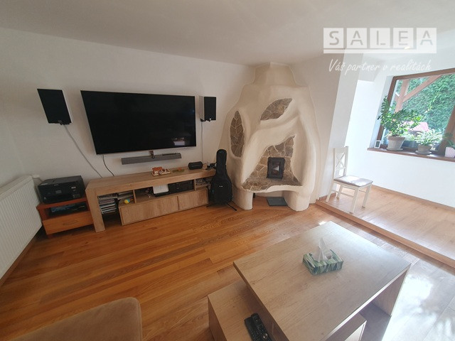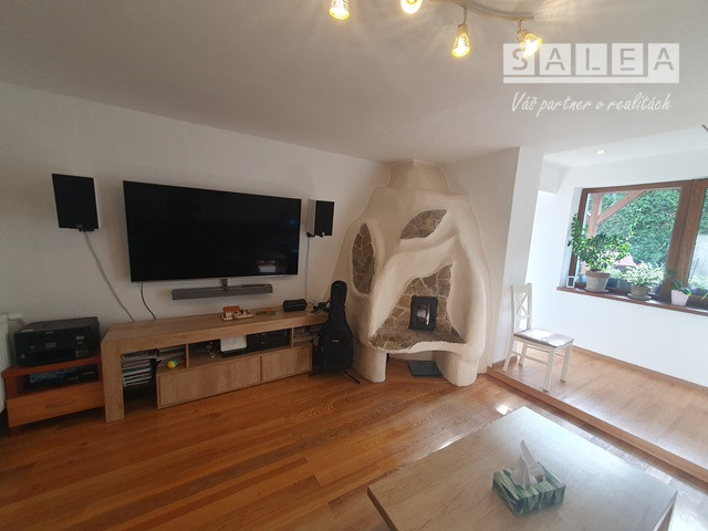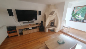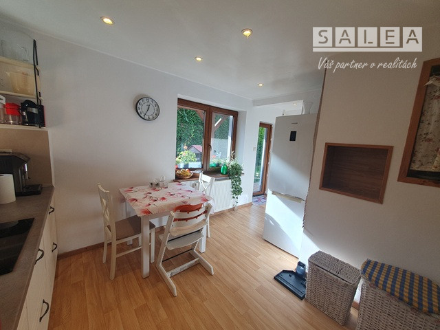Dispozičné riešenie realizované v premyslenom štýle: presvetlená kuchyňa, nová kuchynská linka + vstavané spotrebiče, kúpeľňa spojená s toaletou (sprchový kút + sanita), priestranná obývačka s murovanou krbovou pecou, spojená s kuchyňou - chodbou, s bezbariérovým prístupom na 2x terasu (15m2) a (21m2), vizuálne spojenie s udržiavanou okrasnou záhradkou.