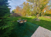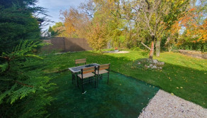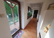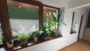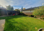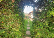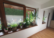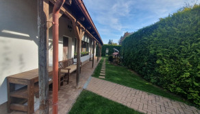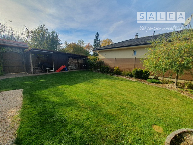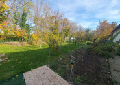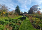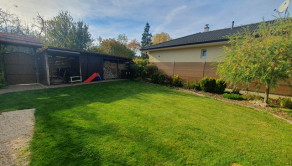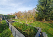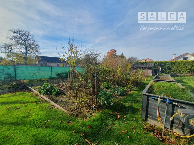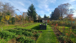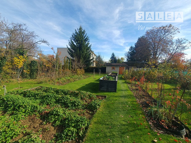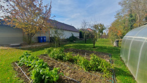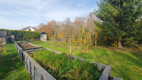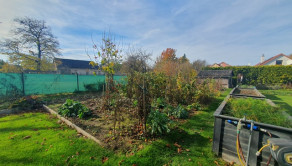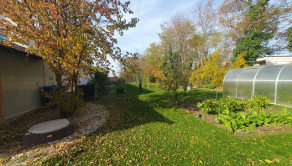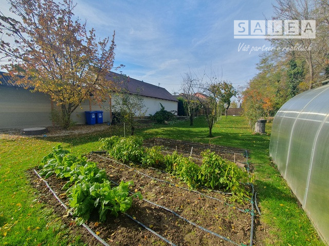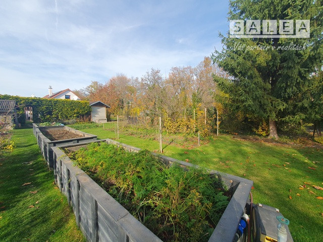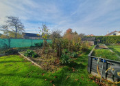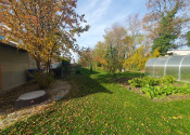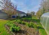 Záhradný domček - murovaný + elektrina (13m2). Záhrada (rovinatý pozemok) – ovocné stromy, vyvýšené záhony (automatická závlaha – časovač), možnosť odkúpiť skleník.