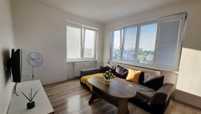 Byt sa prenajíma kompletne zariadený: posteľ, gauč, TV, práčka, skrine a ďalšie vybavenie.