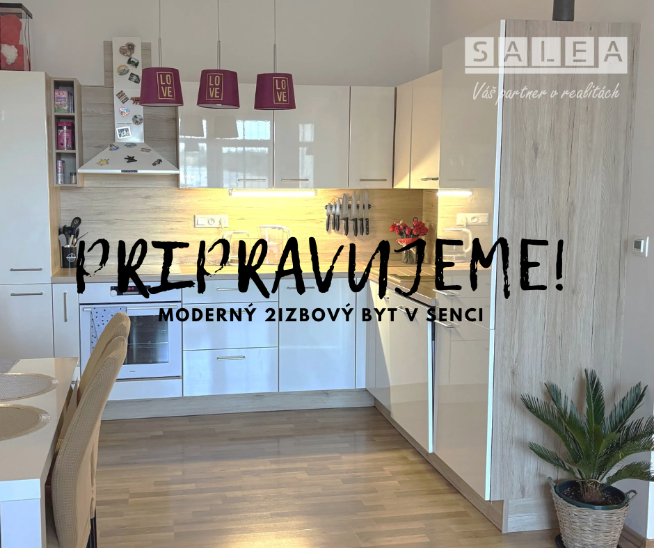 SaleA - Váš partner v realitách Vám ponúka na predaj krásny moderný 2izbový byt v Senci v krásnej lokalite pri Mesačnom jazere a s výbornou dostupnosťou do Bratislavy. Samotný byt s úžitkovú plochu 52 m2 sa nachádza na 2. poschodí novostavby skolaudovanej v roku 2018 a prislúcha k nemu balkón s takmer 8 m2 plochy. Celý bytový dom je zabezpečený kamerovým systémom a k bytu je možné si prenajať/dokupíť parkovacie miesto priamo pred vchodom.