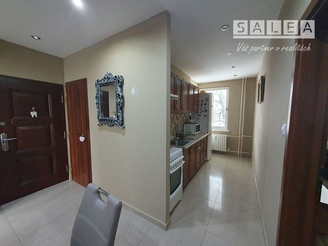 Nové: strecha, elektroinštalácia, odpady, plastové okná + interiérové žalúzie, keramická dlažba + plávajúca podlaha, interiérové + vchodové dvere (bezpečnostné), optický internet, elektronický vrátnik, kuchynská linka + spotrebiče, murovaná kúpeľňa (sanita, rohová vaňa, miesto pre práčku + okno). K bytu prislúchajú spoločné priestory na odkladanie bicyklov, špajza na medziposchodí (2m2) + pivničná kopka (2m2). Mesačné náklady: 130 €. Výhodou: slnečná lokalita, primeraná možnosť parkovania, autobusová a vlaková stanica (3 minuty chôdzou), dostupnosť do centra a parku (25 minút chôdzou), do prírody (cyklotrasa, Lodenica - 25 minút), občianska vybavenosť mesta, (MŠ, ZŠ, lekár, lekáreň, sieť obchodov, pizzeria, kultúra), MHD, prípoj na D1. INFO: kosutova@salea.sk Tel. č.:0911544948.