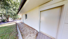 Garáž je pre jedno motorové vozidlo, brána aj garážové dvere sú na elektrický pohon. Okolo domu sú vybudované spevnené plochy, štrkové a betónové chodníky, oplotenie je bariérové s kovovou bránou a bránkou.