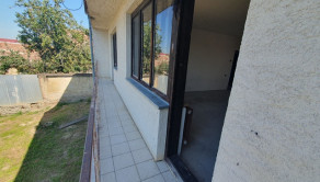 Dispozičné riešenie realizované v premyslenom štýle: vyvýšené prízemie (120m2) - vstupná chodba, kuchyňa, priestor na odkladanie potravín + hala bezbariérovo prepojená s jedálňou, obývačka + loggia (3m2), 1xizba + loggia (3m2), kúpeľňa (vaňa + sanita), samostatná toaleta.