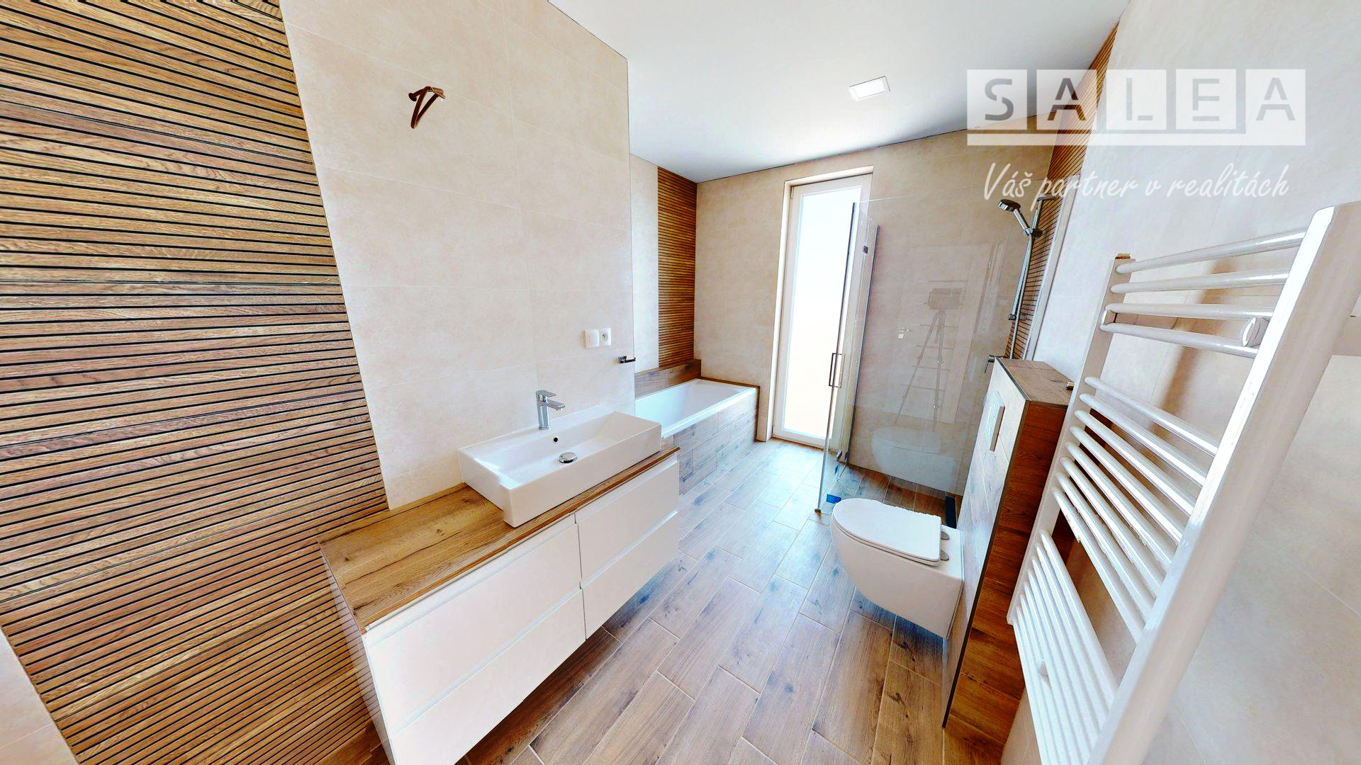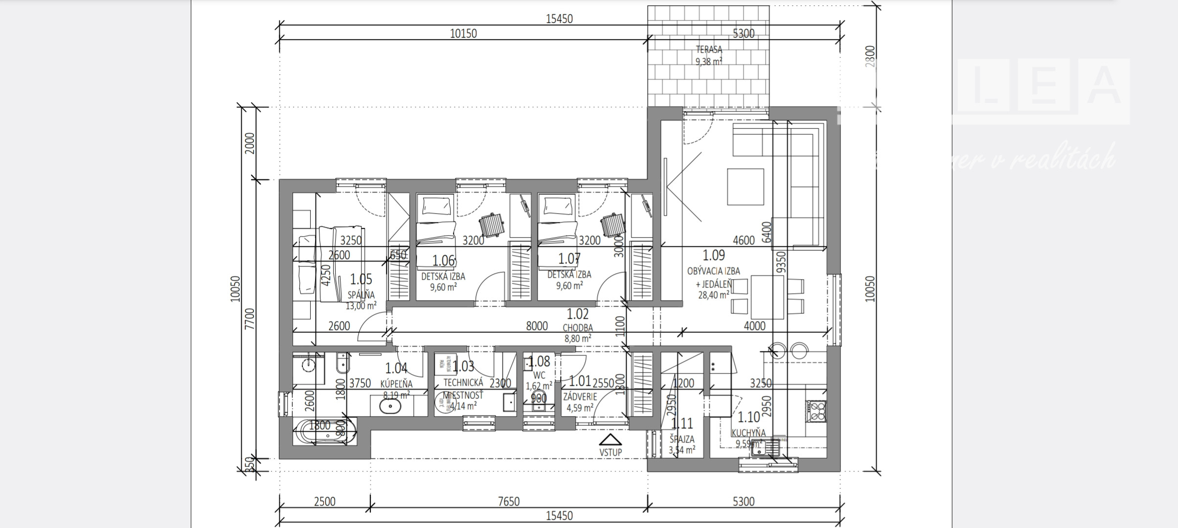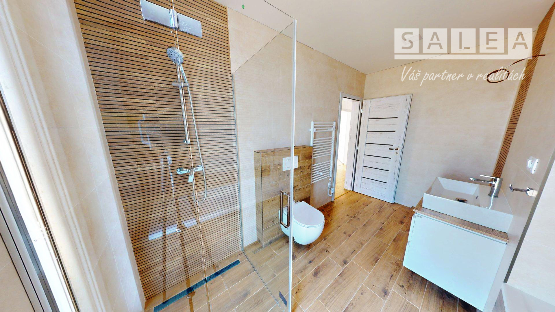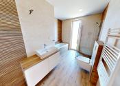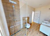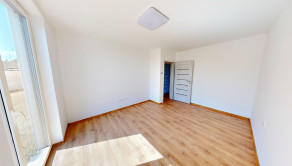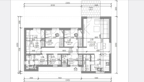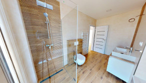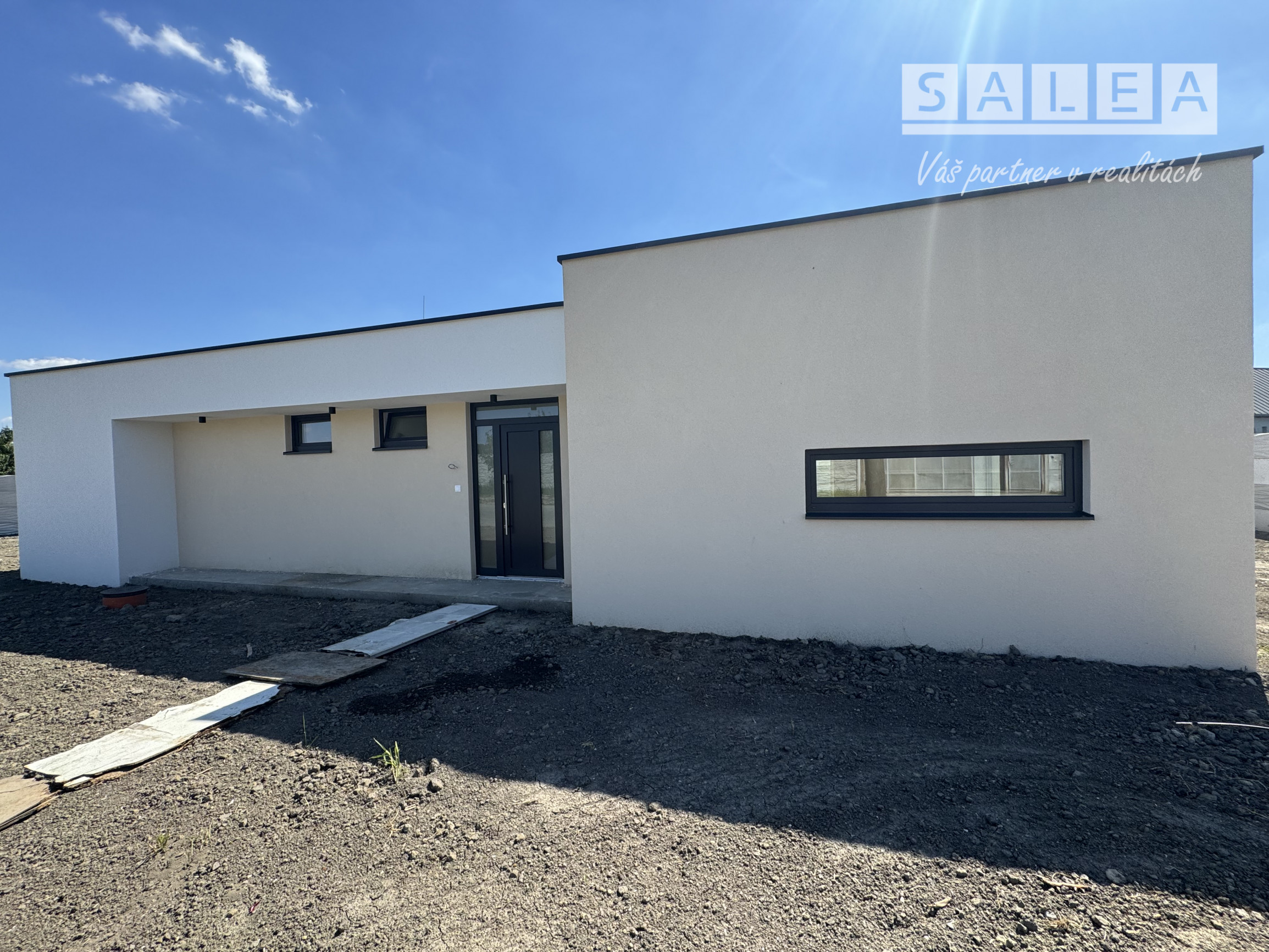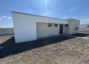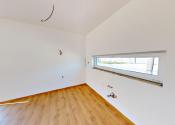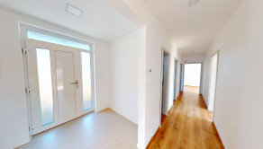 Dispozícia RD: vstupná chodba , po pravej strane sa nachádza veľká obývačka s výstupom na terasu otvorená s kuchyňou, špajza, detská izba, po ľavej strane sa nachádza samostatné wc s umývadlom, technická miestnosť ( bojler na ohrev teplej vody, príprava na práčku), kúpeľňa (s druhým wc, vaňou, umývadlom a sprchou), spálňa a detká izba. Rodinný dom je postavený z kvalitných materiálov. Kúrenie v dome je podlahové elektrické ( termostat v každej izbe), predpríprava na klimatizáciu na chodbe, zateplenie v obvodových stenách 15 cm minerálna vata, zateplenie domu z vonku 10 cm polystyrén, zateplenie stropu 30 cm minerálna vata a fatrafol. Dom je napojený na: elektrinu, vodu, kanalizáciu, optiku ( plyn nie). Z vonku domu je osvetlenie, kvalitné vstupné dvere, plastové okná 3 sklo.