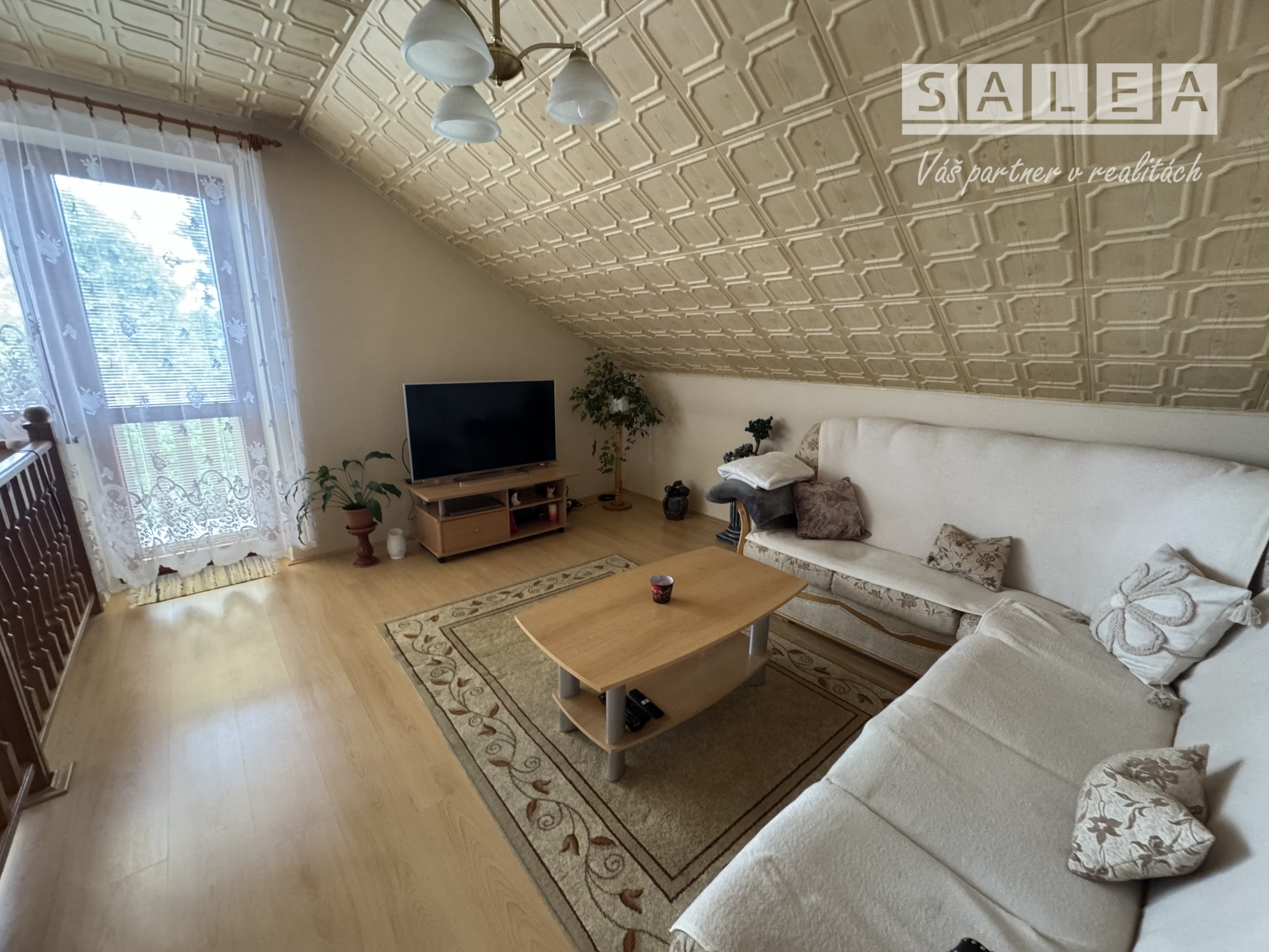 SaleA- Váš partner v realitách Vám ponúka výhradne iba u nás na predaj 5 izbový rodinný dom o výmere 200 m2 na pozemku o výmere 1617 m2. Rodinný dom je pochodový a celý podpivničený. Dispozícia rodinného domu: vstup do domu, po pravej strane sa nachádza obývačka s krbom, kuchyňa s jedálenskou časťou a špajzou, chodba, kúpeľňa so sprchovým kútom a samostatné wc, izba a spáľňa, schody na poschodie. Na poschodí sa nachádza spoločná odychová miestnosť s výstupom na balkón- alebo obývačka, izba, kúpeľňa s vaňou a wc, kuchyňa s jedálenskou časťou a spálňa. V suteréne sa nachádza garáž, práčovňa, technická miestnosť kde sa nachádza ( plynový kotol a elektrický bojler na ohrev teplej vody), špajza, miestnosť kde majú monetálne majitelia fitko a miestnosť na uskladnenie vecí, výstup do záhrady. V dome sú kvalitné vstupné dvere, plastové okná sú vymenené na celom poschodí , na prízemí v obývačke. Dom sa môže využívať aj ako dvojgeneračný ale nemusí. Dom je napojený na všetky IS: voda, elektrina, plyn, kanalizácia. Je postavený z pálenej tehly 30 cm v roku 1997. Na dvore sa nachádza priestor na ďalšie parkovanie áut, hospodárska budova kde sa nachádza miestnosť č. 1 napr na uskladnenie záhradného náradia, miestnosť č. 2 a dva chlievy. Ďalej sa na pozemku nachádza zastrešená terasa, studňa na polievanie záhrady a hojdačky pre deti. V obci sa nachádza MŠ zo ZŠ, potraviny, autobusová zastávka, reštaurácia, pošta. V prípade záujmu o obhliadku ma kontaktujte na 0902 208 854 alebo na pulcova@salea.sk