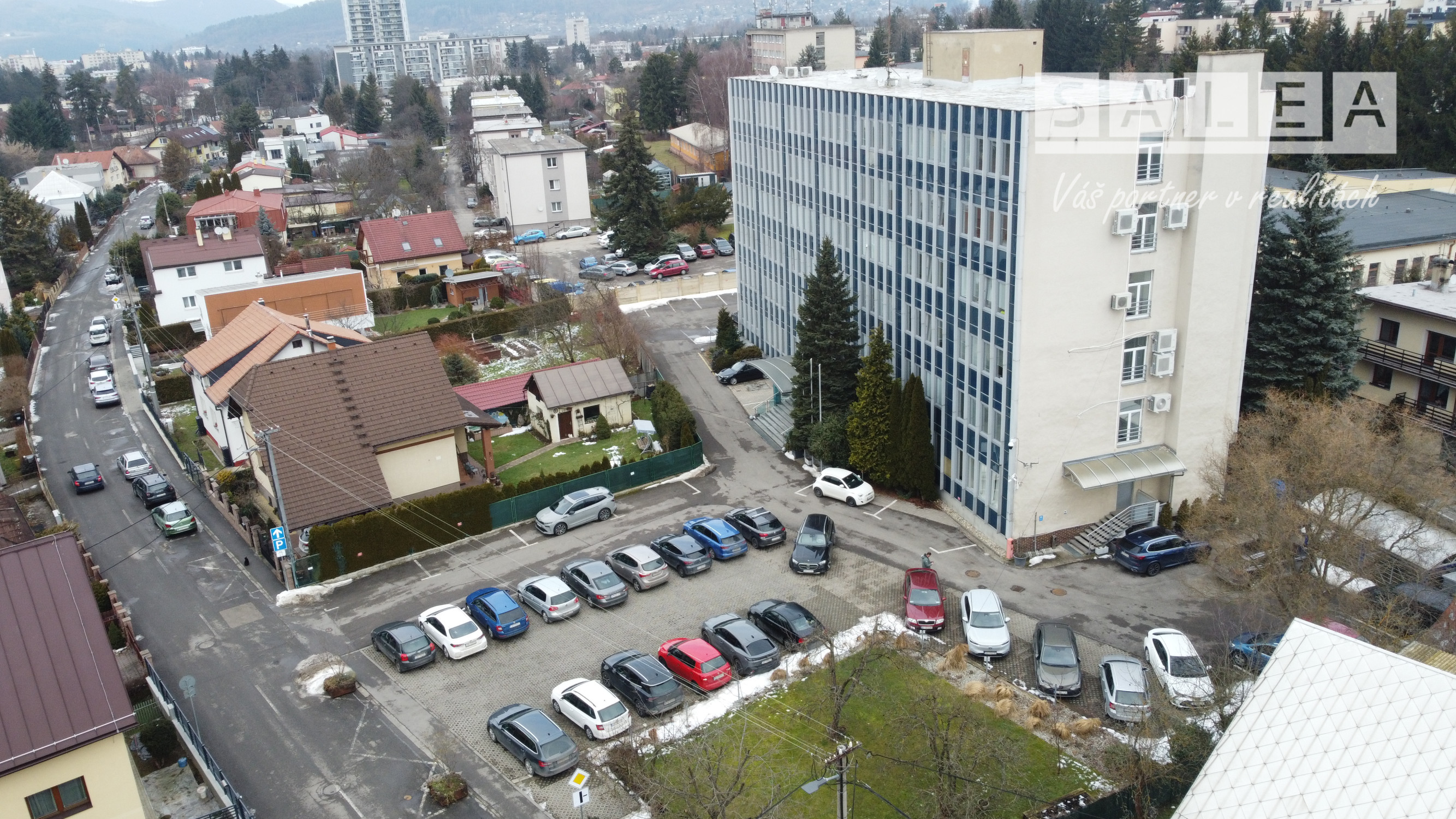 Budova sa nachádza v monitorovanom a zabezpečenom objekte s alarmom a parkovaním priamo pri budove. Súčasťou objektu je bufet a pilates štúdio, ktoré zvyšujú komfort pracovného prostredia. Lokalita ponúka pokoj, zeleň a zároveň rýchlu dostupnosť do centra mesta.