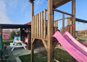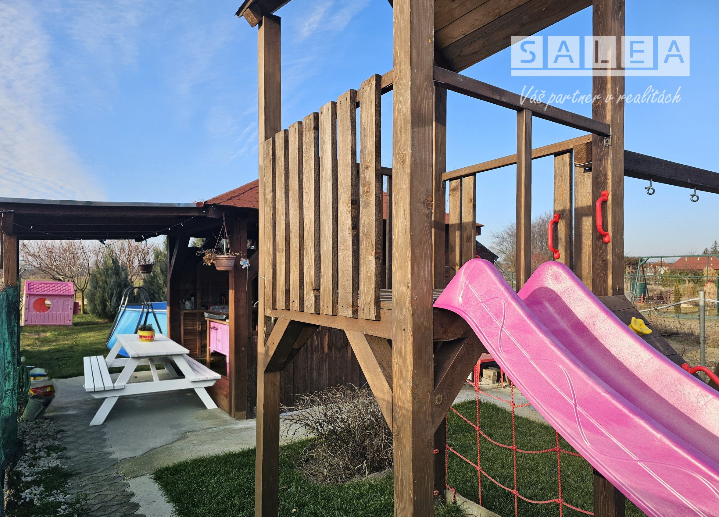 Skutočný nadštandard je však súkromná záhrada v osobnom vlastníctve. Nájdete tu veľký drevený altánok na rodinné posedenia, skladací bazén pre deti, vyvýšené záhony na pestovanie, WC, vonkajšiu chladničku a až 11 ovocných stromov. Ideálny priestor na oddych, grilovanie aj pestovanie vlastných plodín.