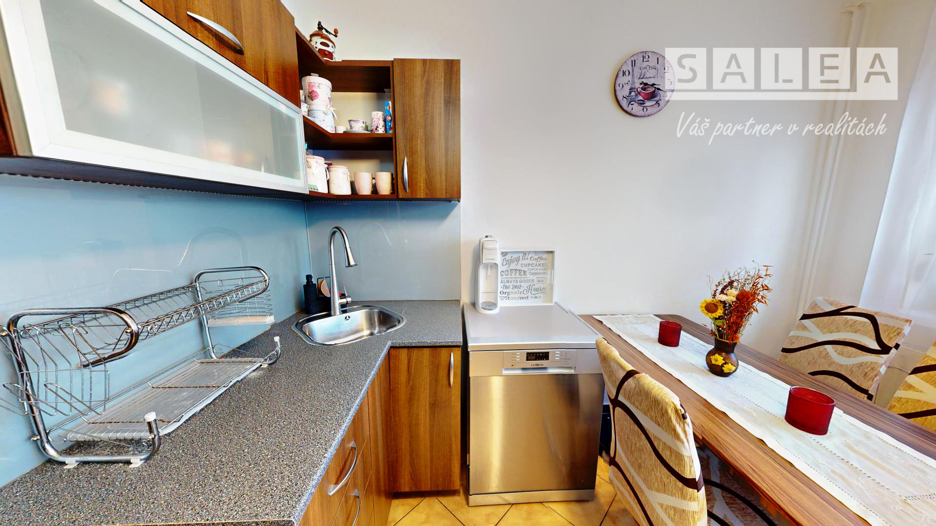 Byt prešiel rekonštrukciou, má nové okná s vonkajšími žalúziami, nové podlahy, vstavané skrine a veľkým bonusom je klimatizácia, ktorá zabezpečí komfort počas horúcich letných dní. Samozrejmosťou je vlastné kúrenie, takže si teplo aj náklady regulujete sami.