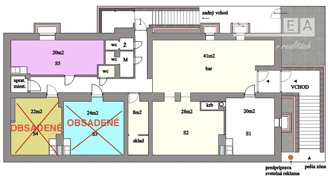Bar+S2(pôdorys)+sklad+wc pers.+1 parkovacie miesto +/- 80m2 - 900€/mes+energie- VOĽNÉ