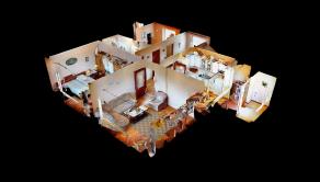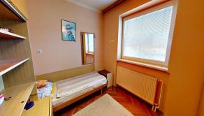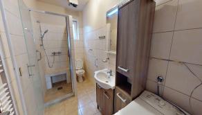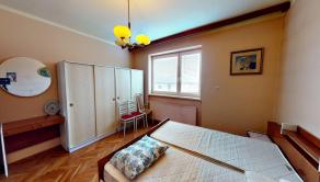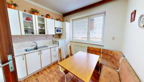Poschodie: presvetlená chodba + odkladací priestor, obývačka, 2x izba, kuchyňa, kúpeľňa spojená s toaletou (sprchový kút + sanita + skrinka + okno), odkladací priestor na potraviny, schody (vstup do podkrovia - možnosť realizácie obytných priestorov).