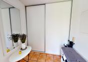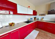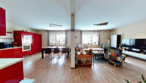 Terasa (30m2), vizuálne prepojená s udržiavanou okrasnou záhradkou. Bonus: možnosť: 3x vlastné parkovacie miesto + garáž. Mesačné náklady:150€.