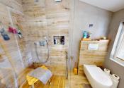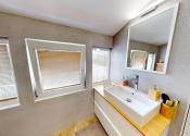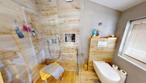 Poschodie: 2x izba + 2x okn, kúpeľňa spojená s toaletou (sanita + vaňa), 2x šatník.