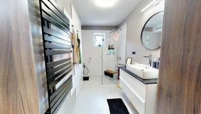 Rodinný dom spĺňa všetky požadované štandardy. Stavebný materiál (tehla-40cm), sedlová strecha - strešná krytina Bramak (predpríprava na Fotovoltaické panely), krov - zateplenie (200mm-minerálna vata). Fasáda (zateplenie Polystyrén 100mm, omietka-Baumit), okná + vchodové dve – plastové (okná trojsklo – Rehau). Plávajúca podlaha, keramická dlažba + obklad, schody masív.