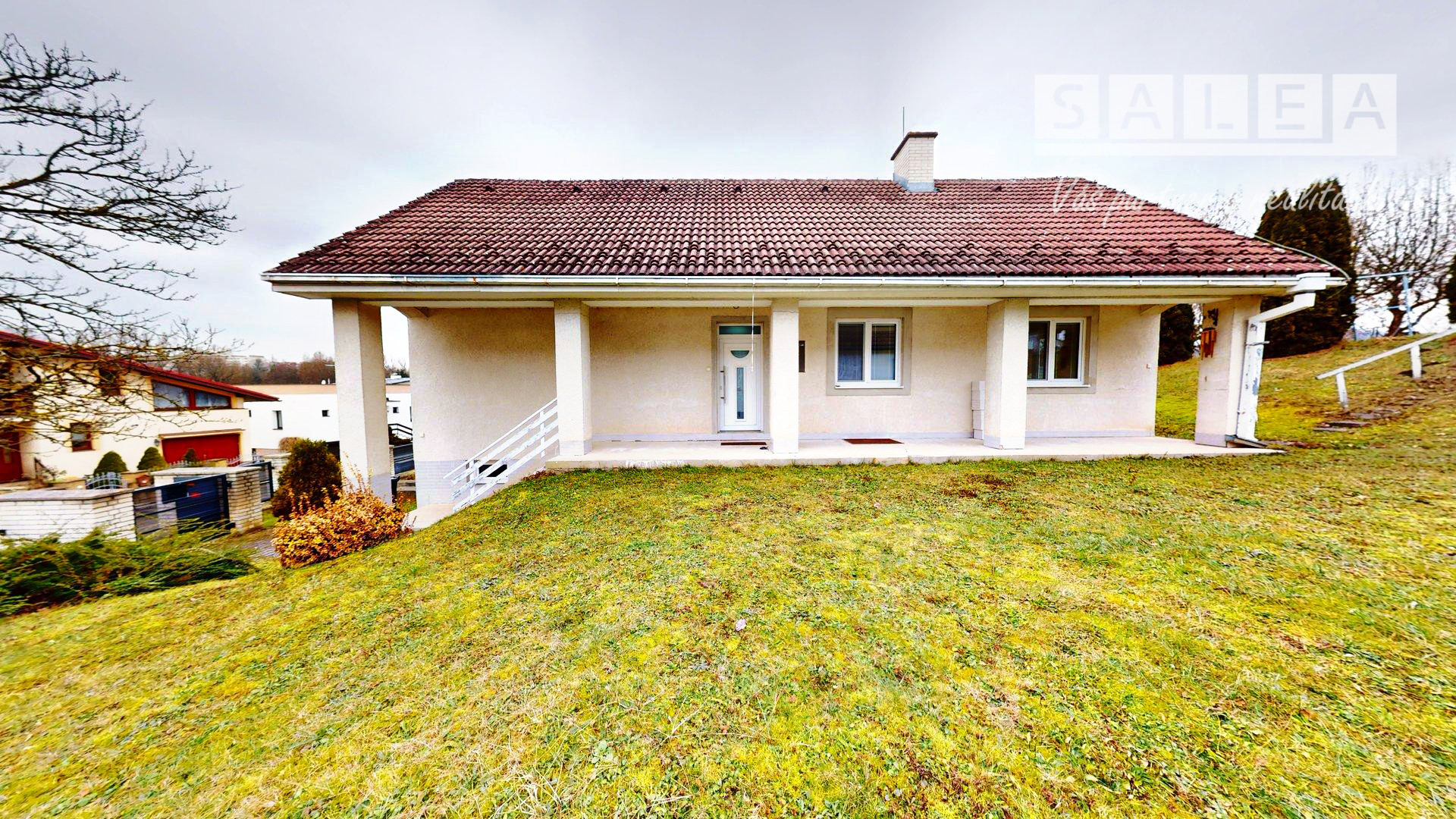 Veľkým plusom je pivnica, ktorá rieši skladovanie a technické zázemie. K tomu je tu veľká garáž (s priamym vstupom do domu cez pivnicu), takže sa viete pohodlne dostať dovnútra aj s nákupom alebo v zlom počasí. Bonusom je krytá veranda – miesto na kávu, posedenie alebo praktický prechodový priestor do domu.