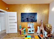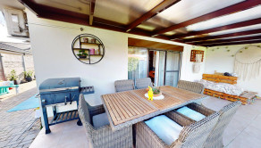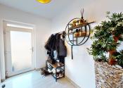 SaleA- Váš partner v realitách Vám výhradne iba u Nás ponúka na predaj krásny a moderný rodinný dom ( ktorý je súčasťou dvojdomu), o výmere 113,4 m2 v Galante na Mládežníckej štvrti. Dom sa nachádza na pozemku o výmere 352 m2. Dispozícia domu: vstupná chodba, otvorená kuchyňa s obývačkou a jedálenskou časťou s výstupom na terasu, technická miestnosť kde sa nachádza bojler, práčka a úložný priestor ( vstup na povalu, ktorá je pochôdzna a spevnená podlaha tak, že si tam viete sraviť ďalšiu izbu), samostatné wc s umývadlom, kúpeľňa so sprchovým kútom, vaňou a dvomi umývadlami, spálňa s rolldor šatníkom, izba s rolldor šatníkom a detská izba s rolldor šatníkom. V celom dome sú vonkajšie elektrické hlinníkove žalúzie, alarm, kamery, 2 x klimatizácia( jedna v obývačke, druhá na chodbe pri izbách). Hlinníkové zastrešenie terasy plus osvetlenie, záhradný domček na náradie, 3 parkovacie mieste na auto, elektrická vstupná brána aj malá bránka, studňa. Vybavenie kuchyne: indukčná varná doska, digestor, vstavaná mikrovlnka a rúra, vstavaná chladnička s mrazničkou, vstavaný kávovar, barový pult s barovými stoličkami. IS: voda, elektrina, kanalizácia, optika. Kúrenie v dome je podlahové elektrické ( elektrické odporové káble), na ohrev teplej vody je elektrický bojler. Termostatny na nastavenie teploty v každej izbe zvlášť. Doplňujúce info: rodinný dom je súčasť dvojdomu, akvšak medzi domami má každá časť domu svoj obvodový múr, nieje to jedna spoločná stena). Mesačné náklady sú 145 € elektrina, 15 € voda. K tejto nehnuteľnosti máme 3D virtuálnu prehliadku, video a dronové zábery, pre Vašu lepšiu predstavu o nehnuteľnosti. Mesto Galanta má veľmi dobrú občiansku vybavenosť, dobré napojenie na diaľnicu smer: TT, TN, BA, NR... Takisto aj dobrá dostupnosť železničnou dopravou. V prípade záujmu ma neváhajte kontaktovať na 0902 208 854 alebo na pulcova@salea.sk