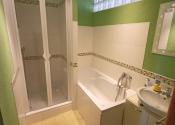 Kúpeľňa je riešená nadštandardne – nájdete v nej vaňu aj sprchový kút a dostatok priestoru na plnohodnotnú práčku aj sušičku, čo výrazne zvyšuje komfort bývania.