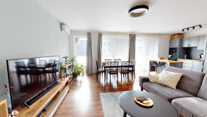 Byt je klimatizovaný, kompletne zariadený a pripravený na okamžité bývanie. Kuchyňa je vybavená vstavanými spotrebičmi a v celom byte sú kvalitné vinylové podlahy, ktoré dodávajú priestoru moderný a elegantný vzhľad.