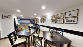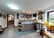 - Jedáleň s plne vybavenou kuchyňou a spoločenskou miestnosťou s krbom.