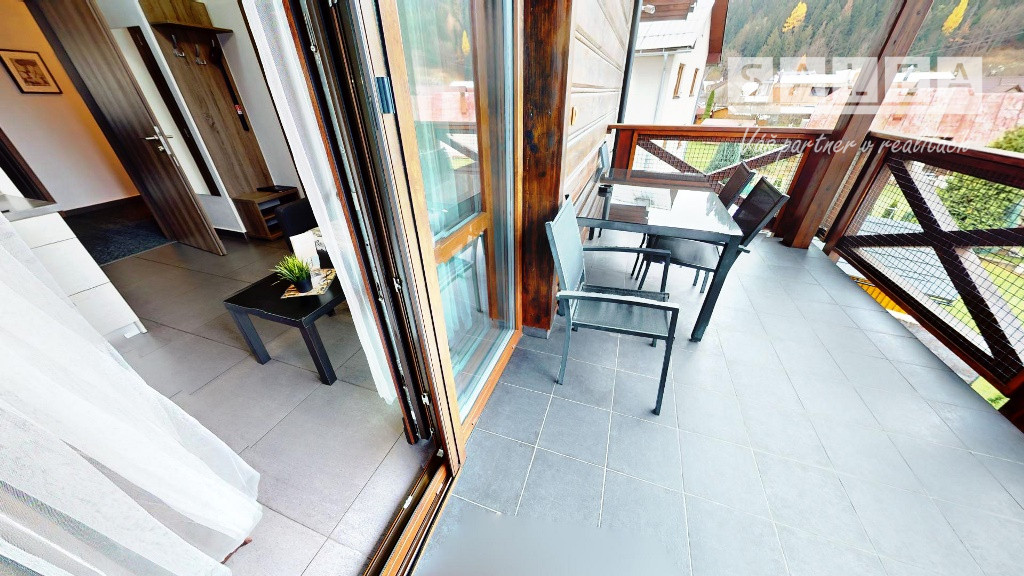 Ideálne pre investorov: Apartmánový dom obsahuje štyri plne zariadené 2-izbové apartmány, ktoré sú momentálne prenajímané cez platformu booking.com. Ročný čistý výnos je 60.000 € – to znamená stabilný výnos vo výške 7,50% p.a.. Dom prešiel kompletnou rekonštrukciou v rokoch 2013 – 2015, takže je pripravený pokračovať v prenájme bez ďalších investícií. Prízemie tvorí recepcia, wellness, lyžiareň, detský kútik a priestranná jedáleň s kuchyňou a krbom.