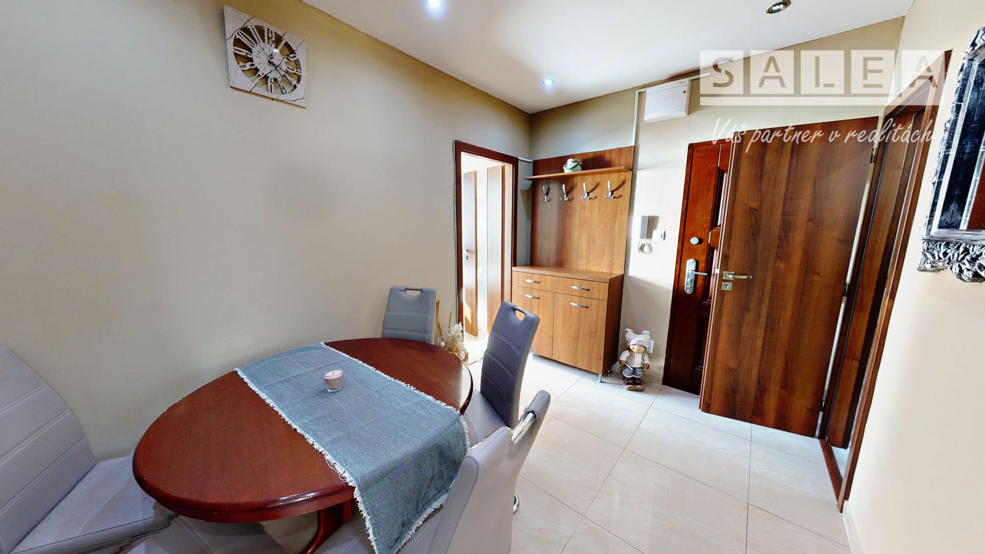 Dispozičné riešenie: plnohodnotná vstupná chodba, odkladací priestor + jedálensky stôl so stoličkami, kuchyňa + okno, spálňa + vstavané skrine, kúpeľňa spojená s toaletou. Príjemne presvetlený byt ponúka komfort bývania, nadčasový výber materiálov a bytových doplnkov umocňuje pocit domova. Majiteľ zladil byt do moderných odtieňov. Biela farba vytvára pocit otvorenosti a svetlosti, rozjasňuje celý priestor, sivá, elegantný sofistikovaný vzhľad, hnedá dodáva teplý a pohodlný nádych, vytvára dokonalé miesto relaxu a pohody.