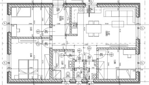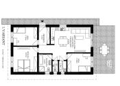 Dispozične je dom navrhnutý ako 4-izbový bungalov, pričom existuje aj možnosť úpravy na priestranný 3-izbový variant podľa preferencií budúceho majiteľa.
