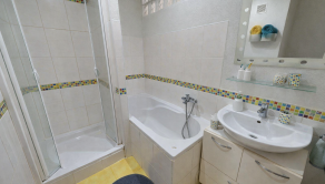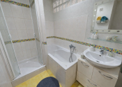 Byt ponúka premyslené riešenie priestoru: vstupnú chodbu so vstavanou skriňou, samostatnú kuchyňu s kuchynskou linkou, kúpeľňu a samostatnú toaletu. Veľkým benefitom je nadštandardne riešená kúpeľňa, kde nájdete vaňu aj sprchový kút a zároveň dostatok priestoru pre práčku aj sušičku – komfort, ktorý v bytoch nebýva samozrejmosťou. Pôvodne bol byt riešený ako dvojizbový. Jedna z izieb bola prakticky rozdelená priečkou, čím vznikol ďalší menší priestor využiteľný napríklad ako šatník, pracovňa alebo menšia izba. Druhá veľká izba zostala zachovaná a má výstup na balkón, ktorý príjemne dopĺňa bývanie. V celom byte sú plávajúce podlahy. K bytu patria aj veľmi praktické priestory: veľká pivnica až 19 m² v suteréne bytového domu, špajza na medziposchodí