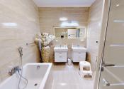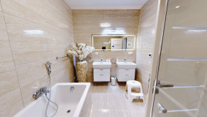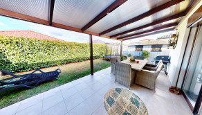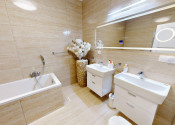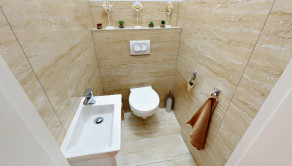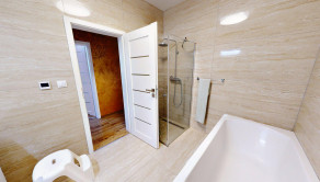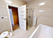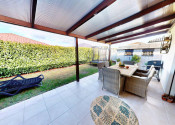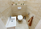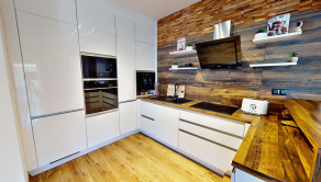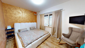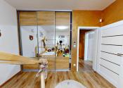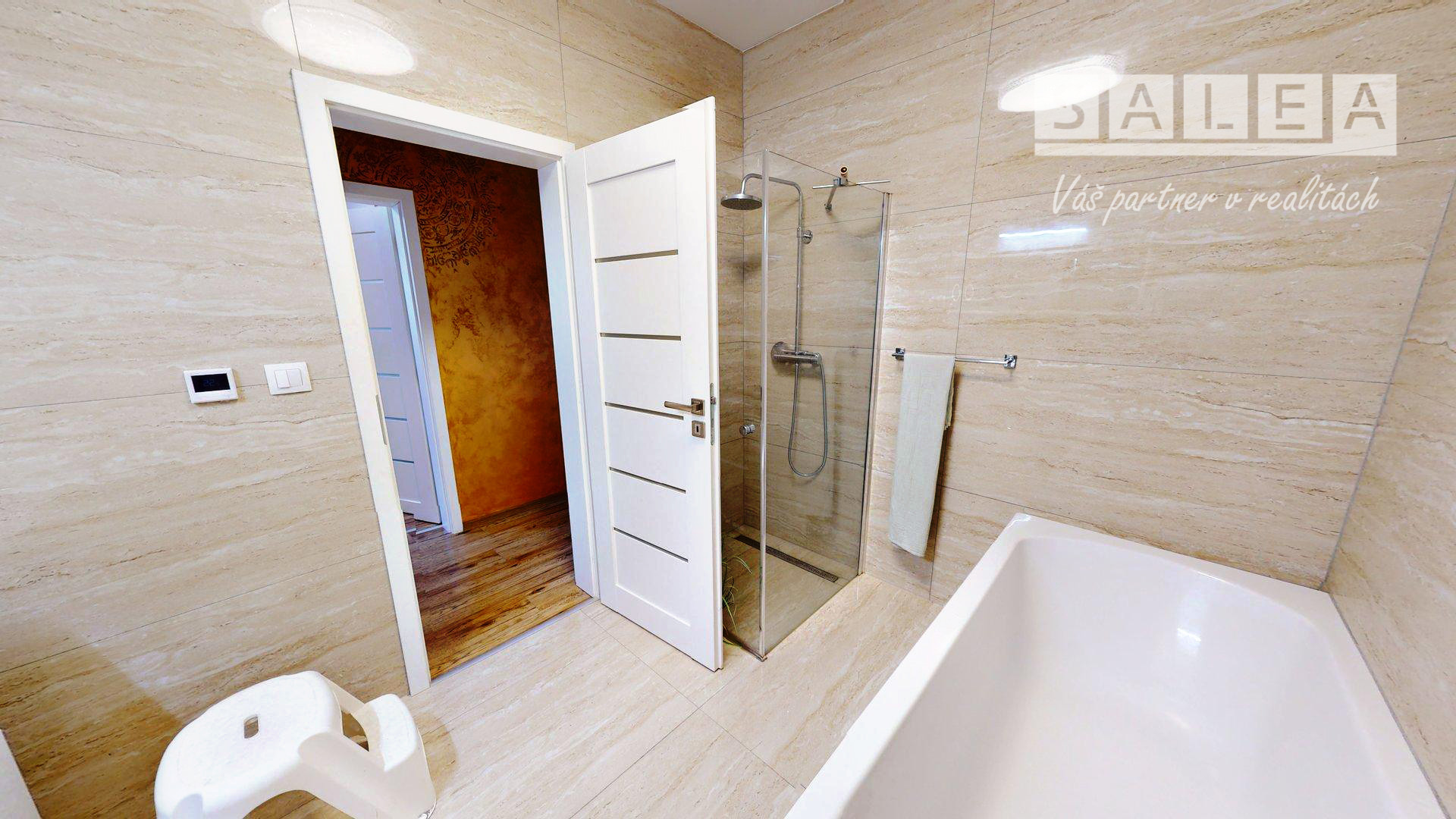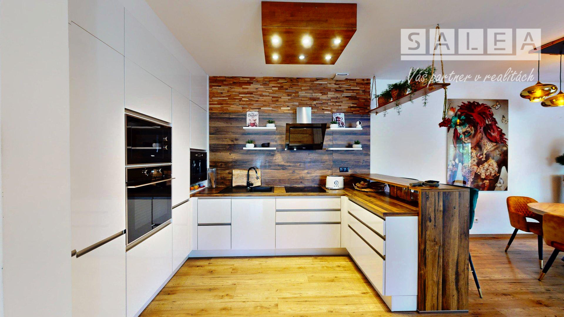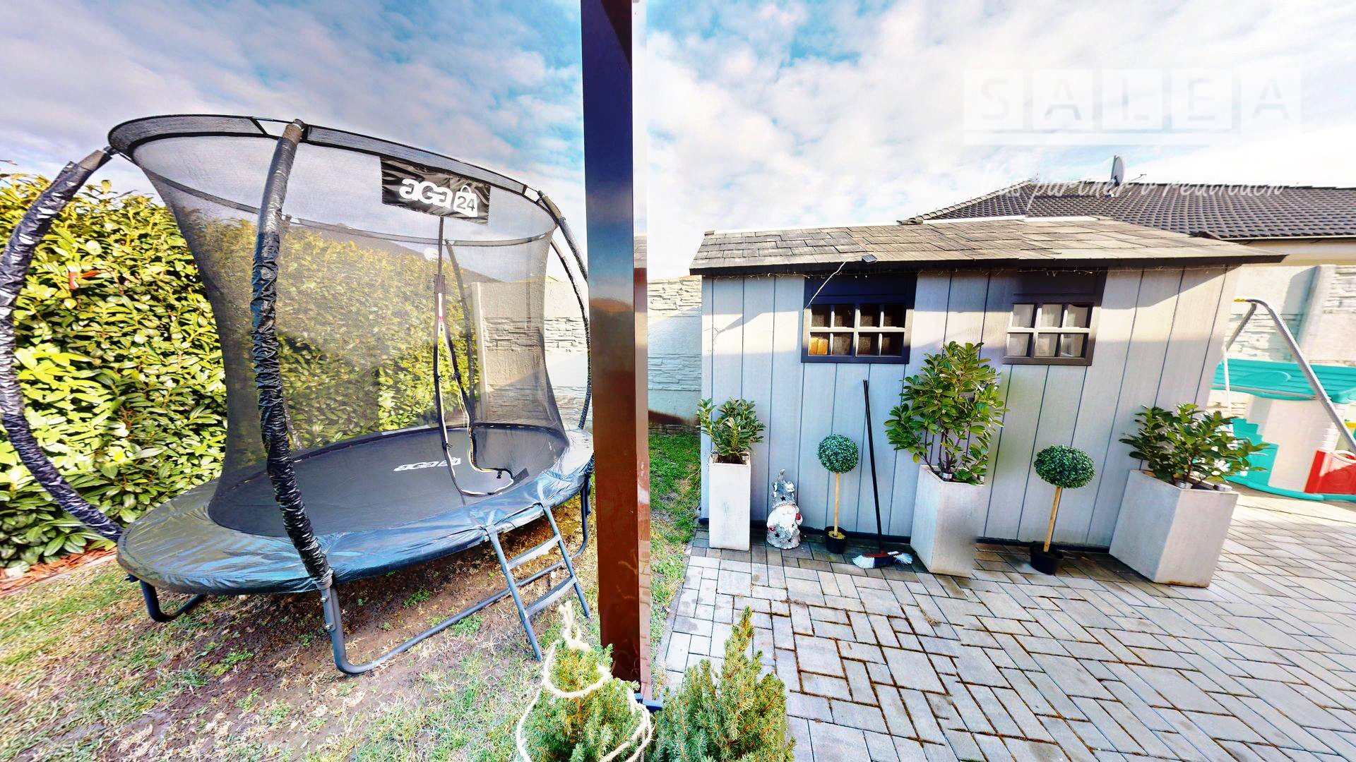 SaleA- Váš partner v realitách Vám výhradne iba u Nás ponúka na predaj krásny a moderný rodinný dom ( ktorý je súčasťou dvojdomu), o výmere 113,4 m2 v Galante na Mládežníckej štvrti. Dom sa nachádza na pozemku o výmere 352 m2. Dispozícia domu: vstupná chodba, otvorená kuchyňa s obývačkou a jedálenskou časťou s výstupom na terasu, technická miestnosť kde sa nachádza bojler, práčka a úložný priestor ( vstup na povalu, ktorá je pochôdzna a spevnená podlaha tak, že si tam viete sraviť ďalšiu izbu), samostatné wc s umývadlom, kúpeľňa so sprchovým kútom, vaňou a dvomi umývadlami, spálňa s rolldor šatníkom, izba s rolldor šatníkom a detská izba s rolldor šatníkom. V celom dome sú vonkajšie elektrické hlinníkove žalúzie, alarm, kamery, 2 x klimatizácia( jedna v obývačke, druhá na chodbe pri izbách). Hlinníkové zastrešenie terasy plus osvetlenie, záhradný domček na náradie, 3 parkovacie mieste na auto, elektrická vstupná brána aj malá bránka, studňa. Vybavenie kuchyne: indukčná varná doska, digestor, vstavaná mikrovlnka a rúra, vstavaná chladnička s mrazničkou, vstavaný kávovar, barový pult s barovými stoličkami. IS: voda, elektrina, kanalizácia, optika. Kúrenie v dome je podlahové elektrické ( elektrické odporové káble), na ohrev teplej vody je elektrický bojler. Termostatny na nastavenie teploty v každej izbe zvlášť. Doplňujúce info: rodinný dom je súčasť dvojdomu, akvšak medzi domami má každá časť domu svoj obvodový múr, nieje to jedna spoločná stena). Mesačné náklady sú 145 € elektrina, 15 € voda. K tejto nehnuteľnosti máme 3D virtuálnu prehliadku, video a dronové zábery, pre Vašu lepšiu predstavu o nehnuteľnosti. Mesto Galanta má veľmi dobrú občiansku vybavenosť, dobré napojenie na diaľnicu smer: TT, TN, BA, NR... Takisto aj dobrá dostupnosť železničnou dopravou. V prípade záujmu ma neváhajte kontaktovať na 0902 208 854 alebo na pulcova@salea.sk