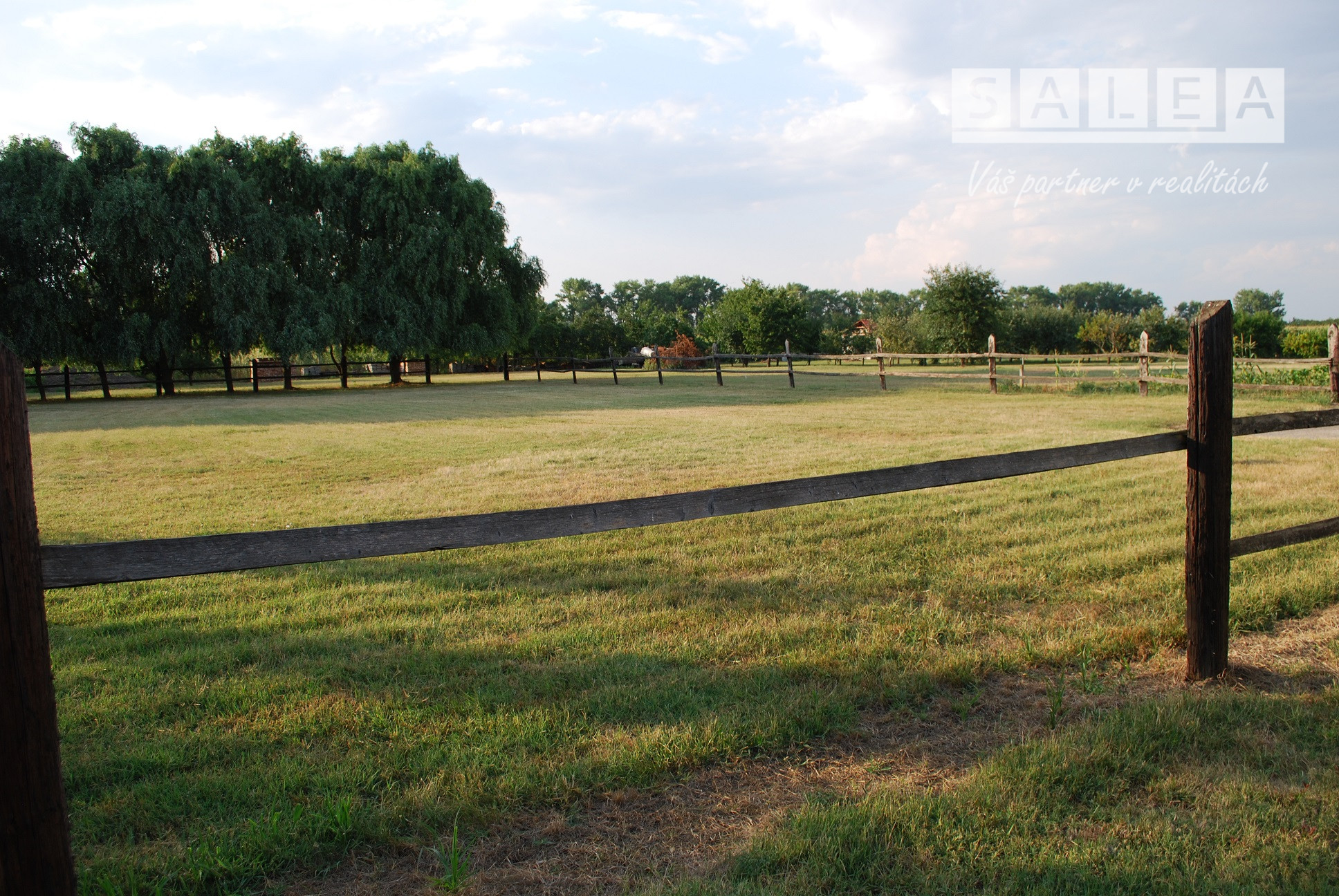 SaleA Váš partner v realitách Vám ponúka na predaj Vilu Ranč v okrese Šaľa. Vila sa nachádza na rozľahlom pozemku o výmere 19 527 m2. Disponuje mnohými apartmánmi s kúpeľňami, izbami pre hostí s kúpeľňami, prevádzkovou kuchyňou, barom s bowlingom, tanečným parketom, spoločenskou miestnosťou vhodnou na rôzne akcie ( krb), fitkom, saunou, terasou, bazénom, izbami pre personál, stajňami pre kone, plochou pre tréning koní a jazdenie. Na pozemku sa nachádza krásne jazero pri ktorom sa nachádza krytý gril, ohnisko jakuzza a neskutočne veľa okrasných a ovocných stromov ktoré zdobia celý areál. Nezabudneme ani spomenúť tenisový a volejbalový kurt, a detské ihrisko. Vila Ranč je doslova - Oáza relaxu, športu, akcií a koní, pre dospelých aj deti.