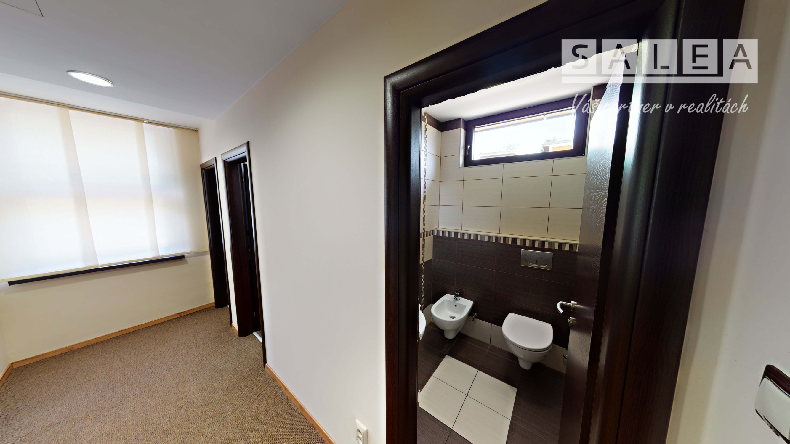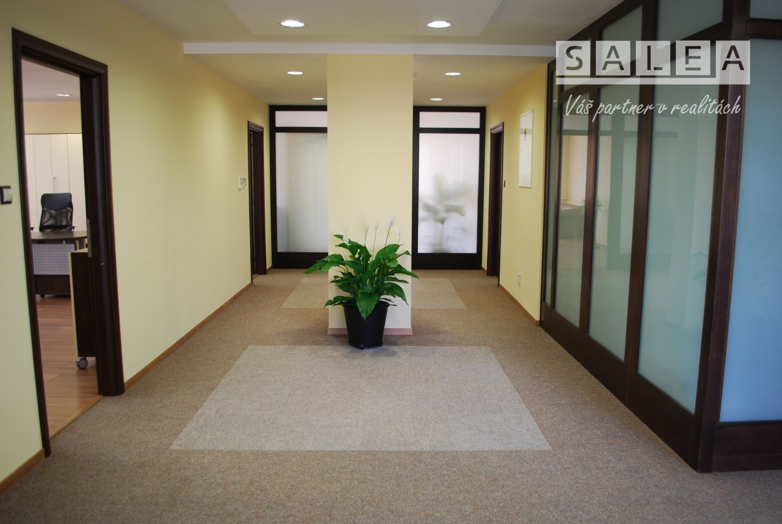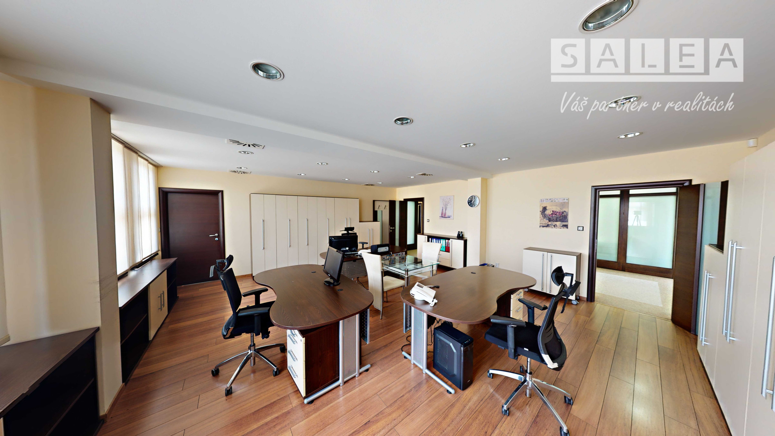 SaleA- Váš partner v realitách Vám ponúka výhradne na prenájom kancelársky priestor o výmere 55 m2 s archívom na ulici Jarmočná v budove Rica. Kancelária je zariadená a komplet vybavená nábytkom ako vidíte na fotkách. Kancelária má samostatné zabezpečenie alarmom a videovrátnikom na zvonček. Podlahové kúrenie, centrálna klimatizácia, pri vstupe do budovy otváranie na čip. Kancelária sa nachádza na 1 poschodí. Čo sa týka spoločných priestorov k dispozícií máte kuchynku- komplet vybavenú (chladničkou, kávovarom, mikrovlnkou a riadom plus jedálenský stôl), wc ženy a wc muži, terasa a priestranná vstupná hala. Spoločné priestory sú centrálne klimatizované, kúrenie je podlahové, zabezpečenie spoločných priestorov kamerovým systémom. V spoločných priestoroch je zabezpečené upratovanie každý deň. Priestory sú čerstvo vymaľované pripravené pre nových nájomníkov. Veľa parkovacích miest pred budovou k depozícií alebo možnosť si prenajať parkovacie miesto. Do centra mesta - pešia zóna 5 min pešo. Dobrá lokalita, kľudné prostredie obklopené zeleňou a na prízemí budovy sa nachádza reštaurácia takže na obed či kávičku nemáte ďaleko :-). V cene nájomného nie sú započítané energie a DPH ( plus energie , plus DPH). Hľadáme dlhodobých nájomníkov, ktorým zaručujeme spokojnosť. V pôdoryse kancelária č. 1. V prípade záujmu ma kontaktujte na 0902 208 854 alebo pulcova@salea.sk