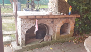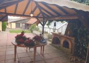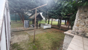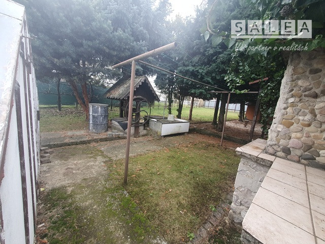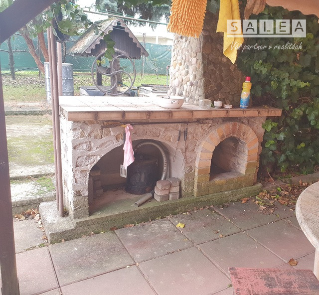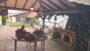 Dvor: garáž (30m2), prístrešok na 2 autá, samostatná prístavba - samostatný vstup: izba + kuchyňa (50m2), terasa (50m2) + exteriérový murovaný krb, murovaná, štýlová studňa, dvor + trávnik + zeleň, murovaná dielňa. Mesačné náklady:150€.