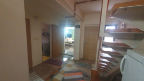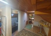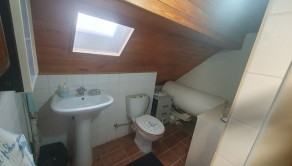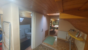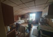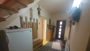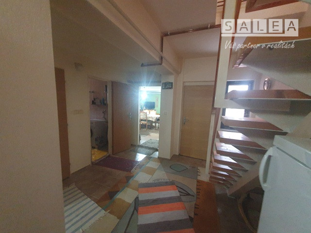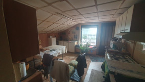 Dispozícia: prízemie – vstupná chodba + odkladací priestor, priestranná obývačka + jedáleň, krbové kachle, bezbariérovo prepojená s kuchyňou + okno, kuchynská linka + samostatne stojace spotrebiče, kúpeľňa spojená s toaletou (vaňa, sanita + priestor na práčku a sušičku), schody z chodby na poschodie.
