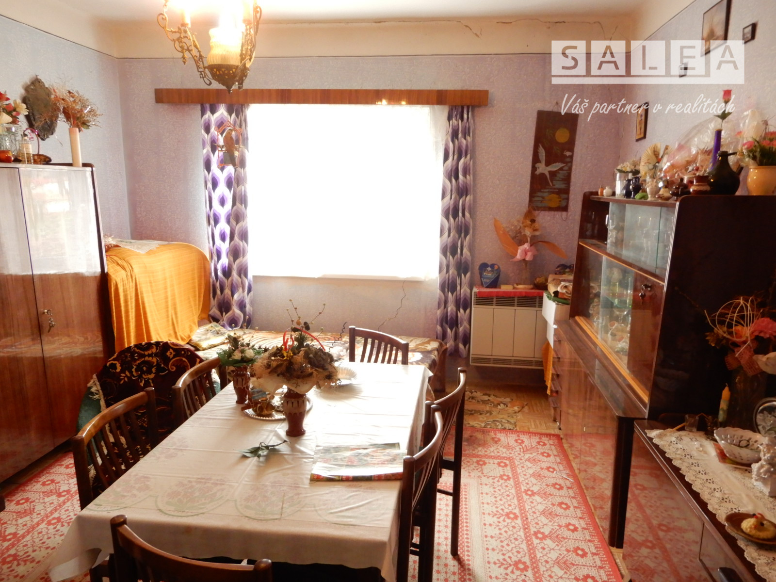 SaleA- Váš partner v realitách ponúka Vám na predaj Rodinný dom, 120 m2 a celková výmera pozemku je 4522 m2, Dedinka, okr. Nové Zámky. PRI RÝCHLOM JEDNANÍ DOHODA MOŽNÁ. Domček sa nachádza v kľudnej časti obce. V dome dispozíčne je vstupná chodba, kuchyňa, špajza, kúpeľňa s WC, 5 izieb. Dom je v pôvodnom stave, jedine boli vymenené 2 okná za plastove a to od ulice. Na stenách sú omietky, na podlahe je PVC, koberce, na chodbe a v kúpeľni je dlažba. V kúpeľni sa nachádza sprcový kút, malá vaňa, umývadlo, dlažba a obklad, bojler s novým potrubím, WC. Do domu je zavedená elektrina, obecná voda, odpad je vyvedený do žumpy, kúrenie je na plyn- Gamatky. Súčasťou domu sú v zadnej časti domu 2 miestosti, ktoré si viete podľa potreby urobiť. Na dvore sa nachádza studňa a krásná výsadba rôzných kvetov, ktoré Vám sprijemnia pobyt. Pozemok je sčasti oplotený. V záhrade sa nachádzajú ovocné stromy a je tam priestor na sadenie si vlastnej zeleniny. Energetický certifikát nie je k dispozícii. Viac info na adrese skutova@salea.sk, alebo na tel. čísle 0944052013. Cena 73990,- eur.