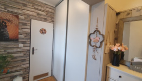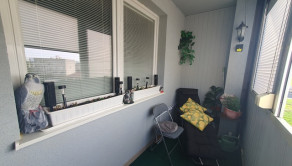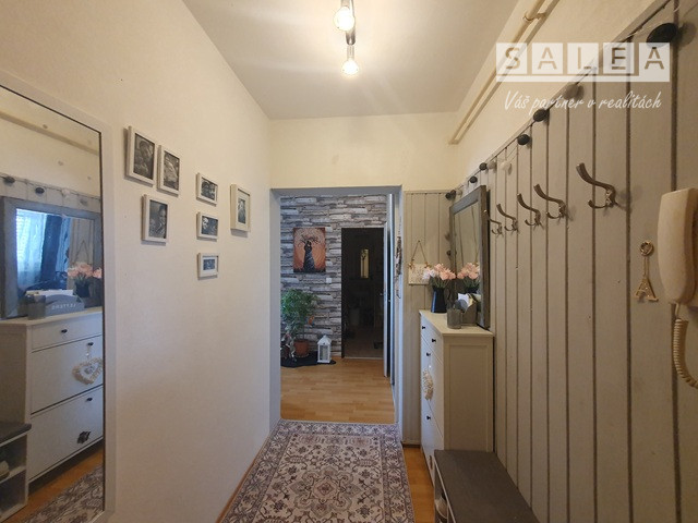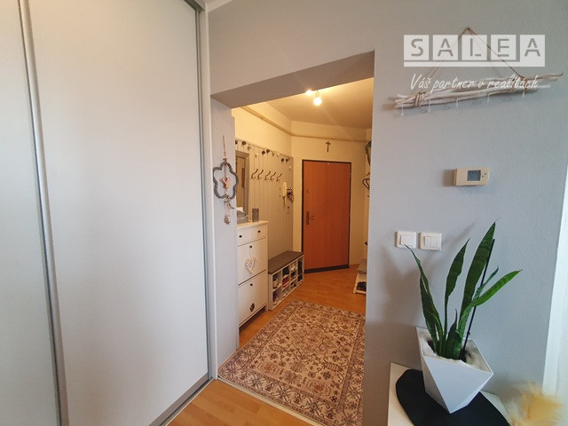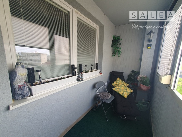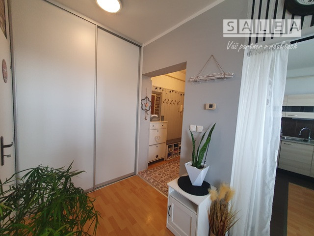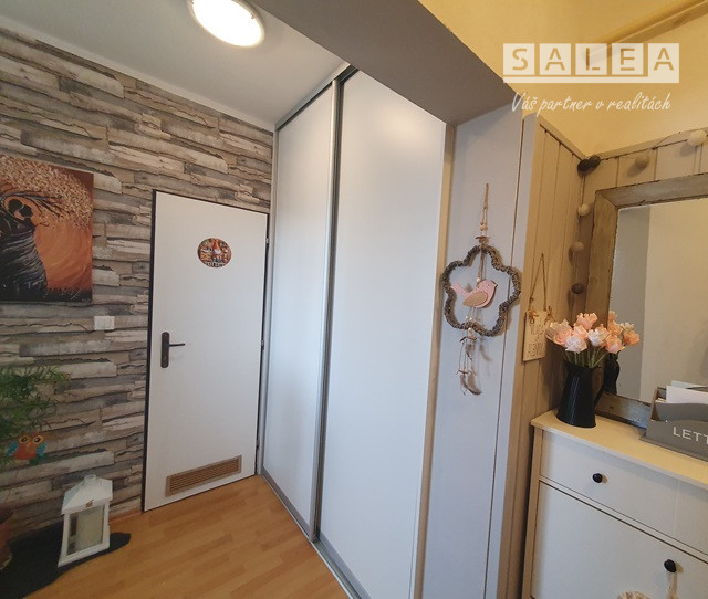 Dispozičné riešenie: plnohodnotná vstupná chodba, odkladací priestor + šatníkové skrine, kuchyňa prepojená s obývačkou + loggia (zasklenená) kúpeľňa spojená s toaletou, (vaňa + sanita + pračka + plynový kotol (vlastné kúrenie).