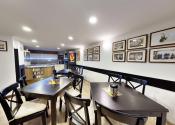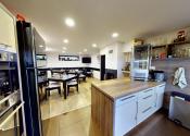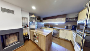 - Jedáleň s plne vybavenou kuchyňou a spoločenskou miestnosťou s krbom.