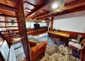 Chata je poschodová a poctivo pripravená na pohodový pobyt aj celoročné bývanie. Na prízemí je obývačka s krbom, kuchyňa, chodba a kúpeľňa s vaňou spojená s WC. Na poschodí sú tri izby (2 samostatné + 1 prechodná) a balkón s krásnym výhľadom. V suteréne je veľká spoločenská miestnosť – ideálna na večerné posedenia s rodinou či priateľmi. Bez problémov tu prespí 8 ľudí – každý má svoje miesto a komfort. Mesačné náklady iba 30 Eur.