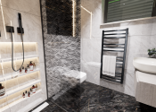 Tri toalety, dve kúpeľne, technická miestnosť, šatník