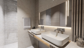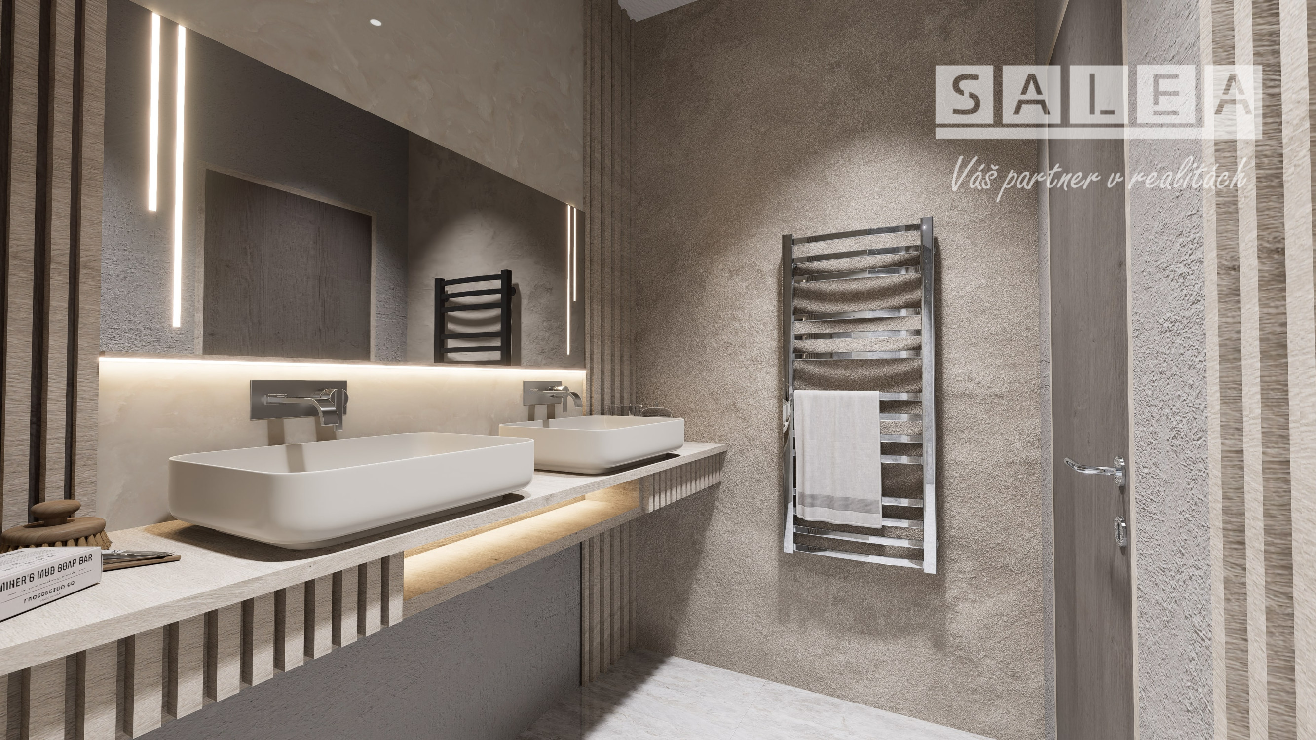 Tri toalety, dve kúpeľne, technická miestnosť, šatník