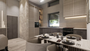 Vysoké stropy až 4m v kuchyni a jedálenskej časti